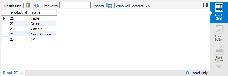 Quiz 1) 한번도 구매되지 않은 상품을 조회하여라.
