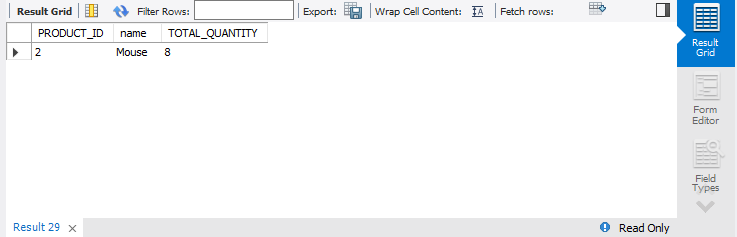 SELECT P.PRODUCT_ID, P.name, SUM(OD.QUANTITY) AS TOTAL_QUANTITY