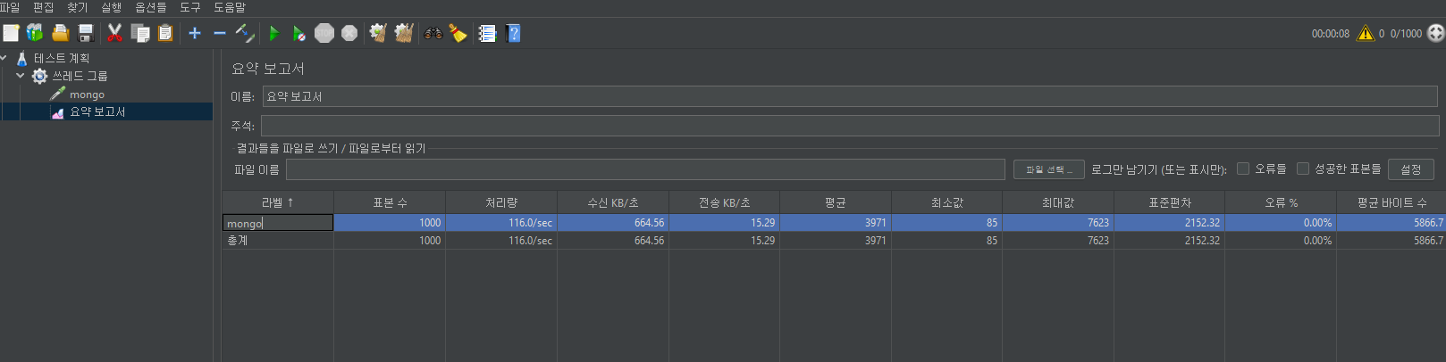 최대 응답 시간 | 10,092 ms | 7,623 ms | MongoDB가 2,469ms 더 짧음 |